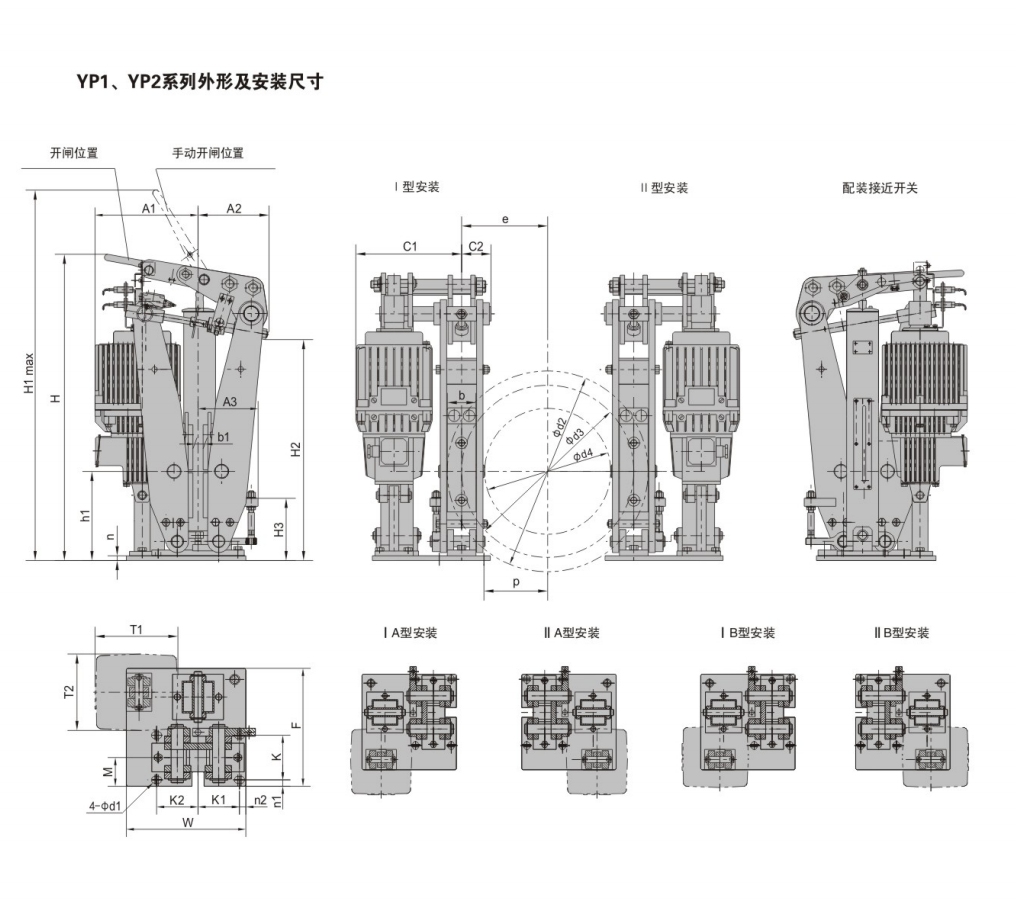 YP1.YP2.YP3系列电力液压盘式制动器是一种高性能、多功能的先进产品。由于其具有瓦块退距自动均等,衬垫磨损自动补偿等先进功能,使用过程中维护非常便捷。通过增设各种限位开关,可给主机PLC提供所需要的联锁保护信号。非常适合各种现代的大型装卸机械、起重运输机械、冶金设备、矿山设备及工程机械中各种机构的减速和维持(停车)制动。