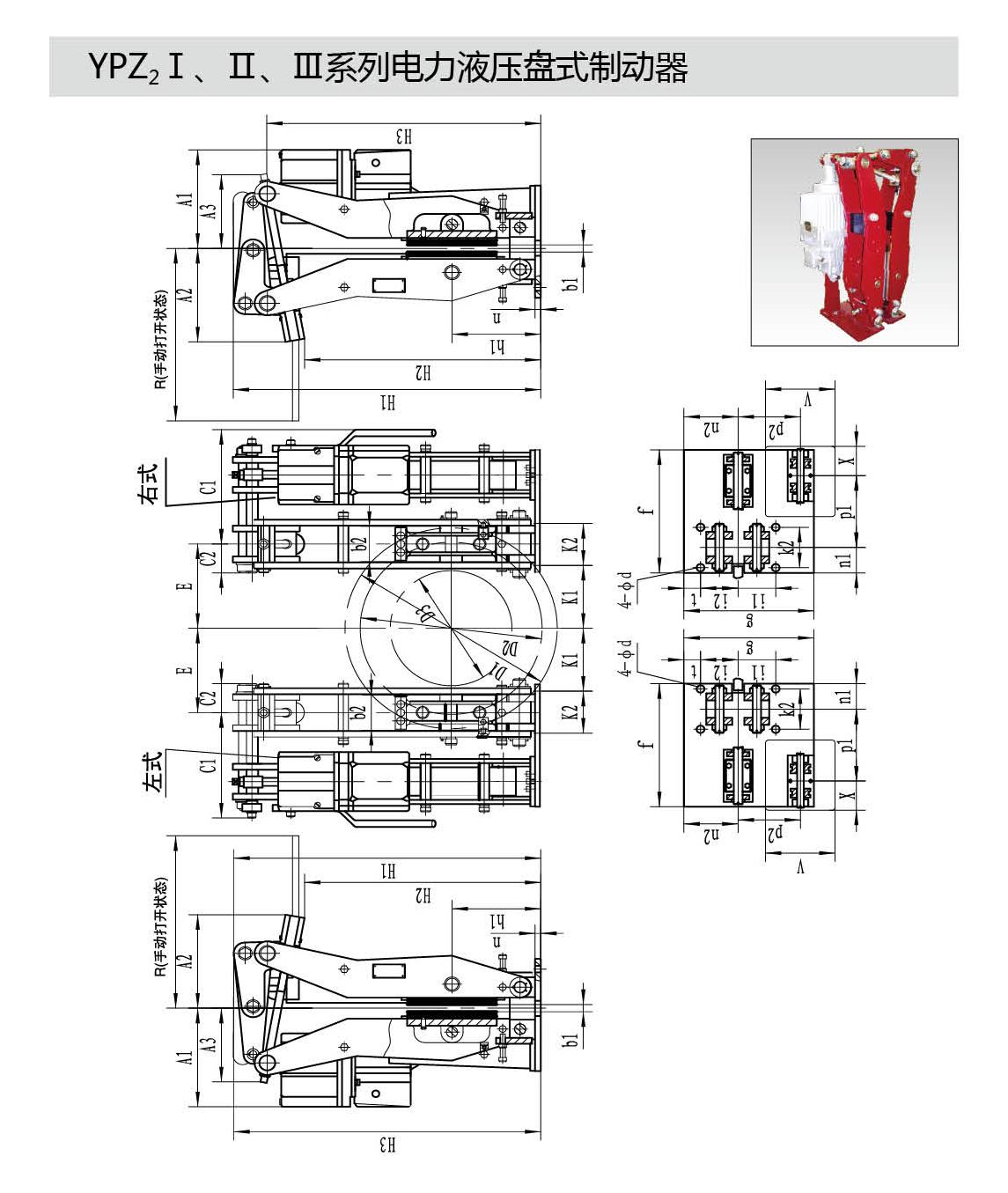 YPZ2ⅠⅡⅢ系列电力液压盘式制动器是一种高性能、多功能的先进产品。由于其具有瓦块退距自动均等,衬垫磨损自动补偿等先进功能,使用过程中维护非常便捷。通过增设各种限位开关,可给主机PLC提供所需要的联锁保护信号。非常适合各种现代的大型装卸机械、起重运输机械、冶金设备、矿山设备及工程机械中各种机构的减速和维持(停车)制动。