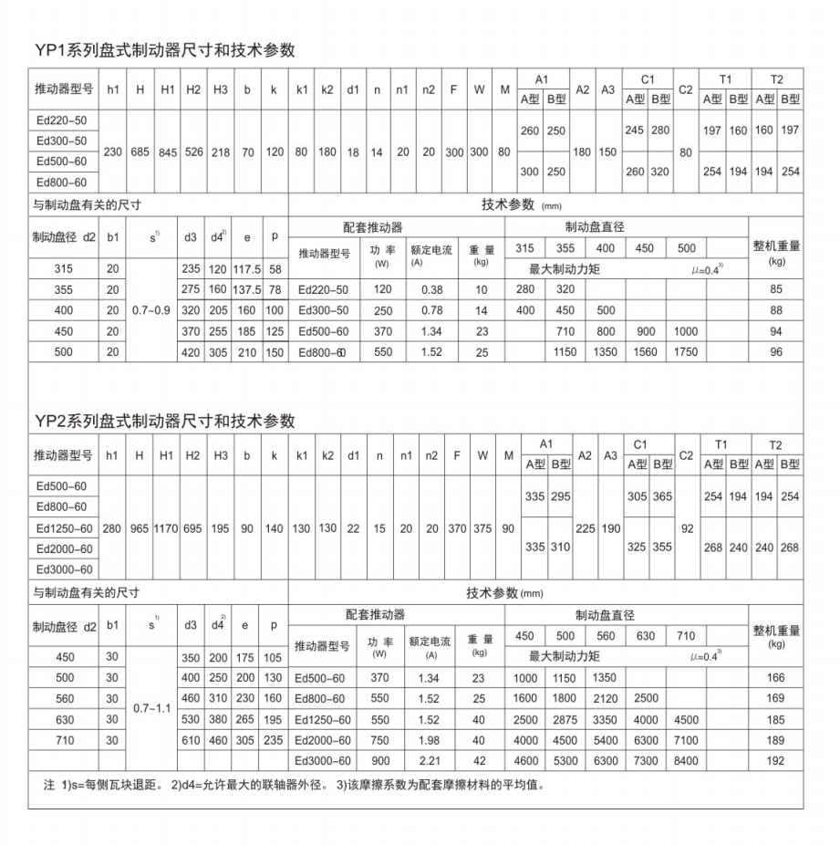 电力液压盘式制动器符合DIN15435标准和JB/T7020-2006标准。配套符合DIN15430标准的Ed系列推动器。