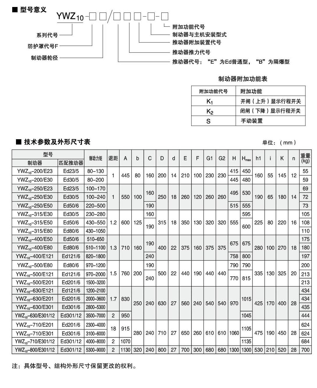 YWZ10,YWZ12系列电力液压鼓式制动器的连接尺寸和制动力矩参数符合GB6333-86标准,技术要求符合JB / T6406-2006标准,配套符合DIN15430标准的Ed系列推动器。